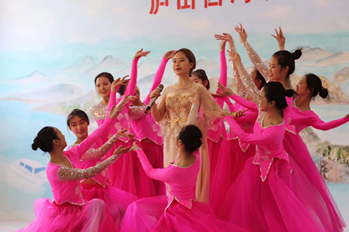 上午9时,乘坐大巴车沿乡间小道行驶,全体成员到达本次活动目的地,本次采风活动以“送戏下乡”的形式进行。同学们充分运用所学的专业特长——歌曲、舞蹈、器乐等形式为当地老百姓献上一场文化盛宴。演出在歌伴舞《江山》中拉开帷幕,歌曲《江山》中体现了老百姓是党的根,一首《江山》中唱出了党中央对全体共产党员干部的淳淳教导,在这首耳熟能详的歌曲中感悟共产党人的英雄本色;接下来舞蹈《甘霖》、小合唱《映山红》、管乐合奏《红色娘子军连歌》、《红星歌》等十余个节目陆续将演出气氛推向高潮,最后在群舞《百花争艳》中结束了这场精彩的文艺表演,受到了当地群众的热烈好评!