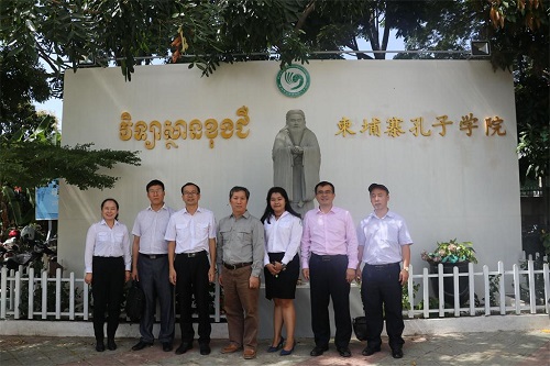 会后,在夏修龙院长和苏碧娜院长的陪同下,李星良副院长一行参观了柬埔寨王家研究院孔子学院,对在柬汉语教师在艰苦条件下为汉语国际推广付出的努力表示钦佩。(何其颖/文 李精英/摄)