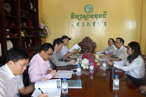 李星良副院长一行对孔子学院的热情接待和周到安排表示衷心的感谢,并对孔子学院为汉语教学和文化交流所做出的努力与所取得的成绩表示赞赏。海南师范大学和海南外国语职业学院分别介绍了各自的情况,希望与柬埔寨孔子学院加强合作,在本土师资培训、奖学金等方面提供支持,欢迎孔子学院的学生到海南学习。