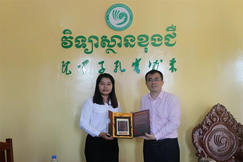 11月30日,海南省社会科学院李星良副院长、海南师范大学国际交流学院陈江院长、海南外国语职业学院国际交流中心黄子艿主任和海南省省委党校文史教研室黄安辉副主任一行访问了柬埔寨王家研究院孔子学院。柬埔寨王家研究院孔子学院中方院长夏修龙教授、柬方院长苏碧娜(VUTH Sopheakna)女士接待了李星良副院长一行,双方在孔子学院会议室进行了友好会谈。
