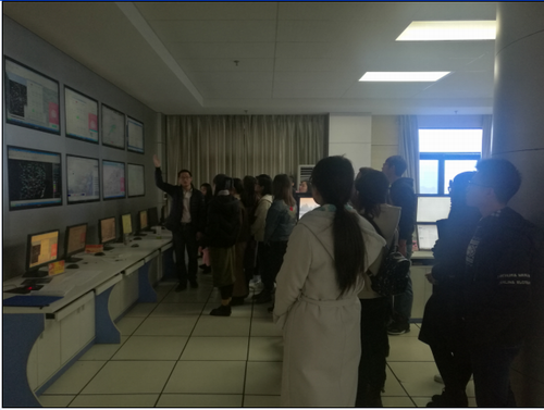 在九江市气象局总部,赵伟工程师给同学们介绍了九江市防灾地图,气象局特有设备的观测方式以及数据收集、处理、公布的各个过程,同时也简单向我们讲解了一些地理地形对气候的影响,如何读懂气象云图等等。