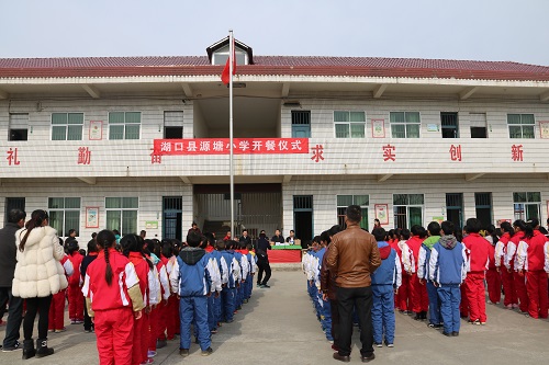 开餐仪式上,源塘小学胡校长介绍了源塘小学基本情况,并代表源塘小学对参与此次爱心活动的社会人士和志愿者表示热烈欢迎和衷心感谢。邱玉林部长在仪式上发表了热情洋溢的讲话,他衷心祝愿学校的孩子们在“免费午餐”的帮助下吃得开心,健康成长。蔡飞主任作为永利yl23411集团官网爱心人士代表发言,表示很高兴参与此次爱心公益活动,希望九江学院师生的绵薄爱心能激励孩子们好好学习、茁壮成长。