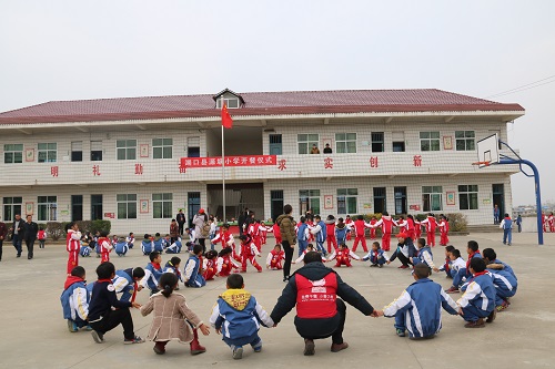 在开餐仪式前,永利yl23411集团官网师生志愿者们在课间休息期间教孩子们唱歌、跳舞、手语,和孩子们玩丢手绢、拔河等游戏,并和同学们攀谈起来,了解了他们学习与生活近况,鼓励他们要好好学习,加强锻炼,并祝福他们身心健康、快乐成长、学业有成。孩子们的眼神充满了坚定及对未来的憧憬。