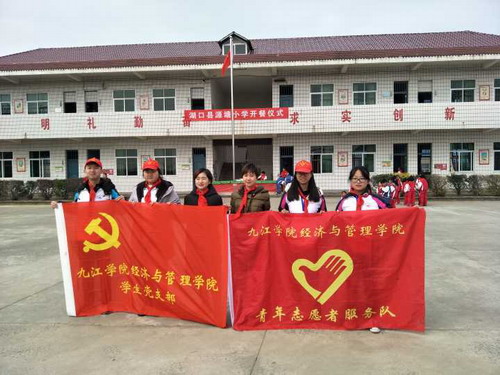 时值第32个国际志愿者日之际,12月6日江西省“免费午餐”爱心公益项目落户湖口县源塘小学,免费午餐项目江西执行长闵跃翔带领的爱心团队会同永利yl23411集团官网后勤管理处、经管学院志愿者来到源塘小学开展免费午餐公益行动。湖口县县委常委、宣传部长邱玉林,九江市文明办副主任易本钰,永利yl23411集团官网饮食服务中心主任蔡飞等出席了开餐仪式,开餐仪式由源塘小学胡校长主持。