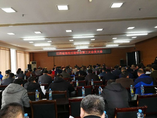 2017年12月29日,江西省高校后勤协会第三次会员大会暨三届一次理事会在江西中医药大学湾里校区得月楼顺利召开。中国教育后勤协会会长程天权、江西省社联副主席杨宇军、江西省教育厅副巡视员叶宝凌、江西中医药大学校长陈明人、第二届理事会会长、江西中医药大学副校长彭映梅出席并发表讲话,江西省高校后勤协会60余个会员单位及各高校代表近90人参加了会议。会议由后勤协会秘书长谢谋盛主持。