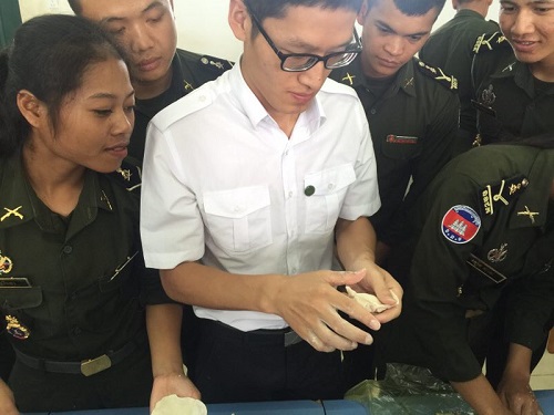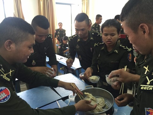 2月2日,为迎接中国新年的到来,让学生们进一步了解中国传统节日文化,柬埔寨王家研究院孔子学院陆军学院汉语中心举办了“迎新年,包饺子”文化体验活动。本次活动由志愿者教师邓利军主讲,汉语中心三位志愿者教师程东、王润泽、范玉贺及大二年级200余人参与。