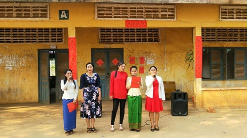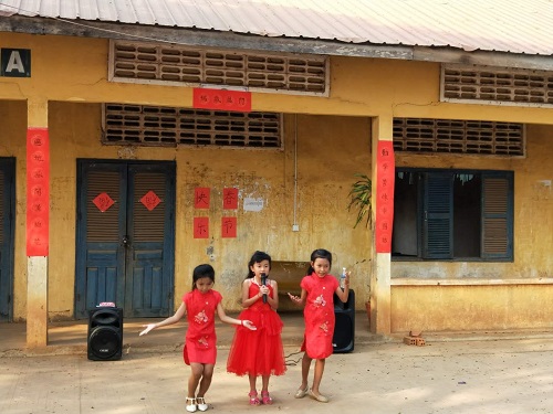 本次春节活动以文艺表演为主,同时穿插有趣的汉语课堂游戏。活动正式开始前,柏威夏汉语中心师生一起贴春联,贴福字,活动现场充满着浓浓的年味。