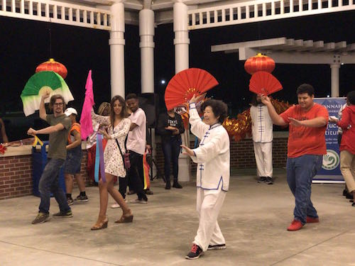 随着萨凡纳州立大学校园的夜空被一朵朵绽开得灿烂无比的璀璨烟花点亮,现场欢呼声不断,大家纷纷抬头仰望祈福,将这一瞬间的美丽凝结成难忘的回忆。活动期间,有许多外国朋友主动向孔院请教和学习汉语新年问候语,有的则跟着转起了红色的八角巾,扭起了东北秧歌,还有的拿起扇子,有模有样地学起了太极功夫扇。随后,孔院教师还组织大家进行了踢毽子、跳绳、抖空竹、筷子夹花生等竞技游戏,现场观众积极参与,争先恐后,每一位获得孔院纪念品的外国朋友脸上都露出了欢乐、灿烂的笑容。