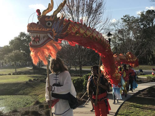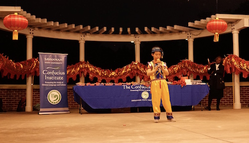 美国当地时间2月16日晚,随着夜幕的降临,在美国萨凡纳州立大学校园内,由美国萨凡纳州立大学孔子学院主办的“2018农历狗年迎春接福”春节庆祝活动正式拉开帷幕。萨凡纳州立大学副校长、国际交流处处长伊曼纽尔·纳纽泽(Emmanuel Naniuzeyi)、萨凡纳州立大学教育广播电台台长格蕾斯·卡瑞(Grace Curry)、萨凡纳查特姆县优秀华人代表以及萨凡纳州立大学师生和周边社区民众共100多人欢聚一堂,共同庆祝2018中国春节。