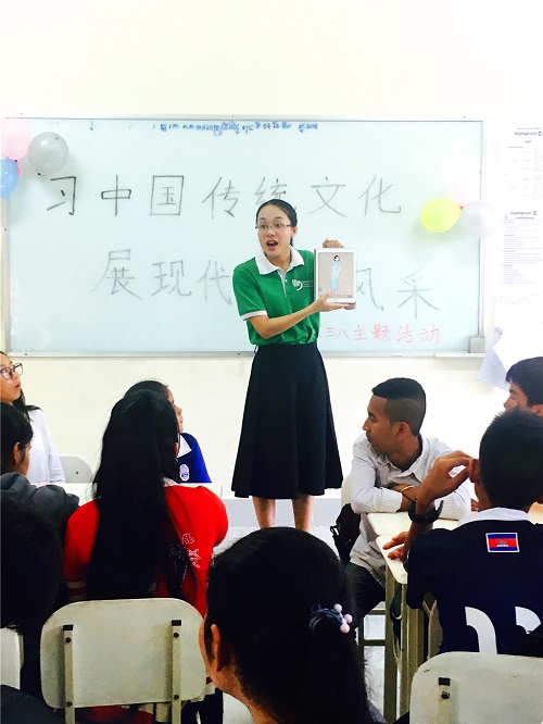 孔子课堂负责人刘振介绍说,柬埔寨和中国都庆祝国际妇女节,希望通过此次节日文化教学激发学生学习汉语和中华文化的热情。柬埔寨古代有个叫柳叶的女王,中国唐朝有个叫武则天的女皇,女性尤其是作为母亲的女性是最伟大的,希望通过此次活动,学员们学会尊重女性、感恩父母,做个负责任、有担当的人。