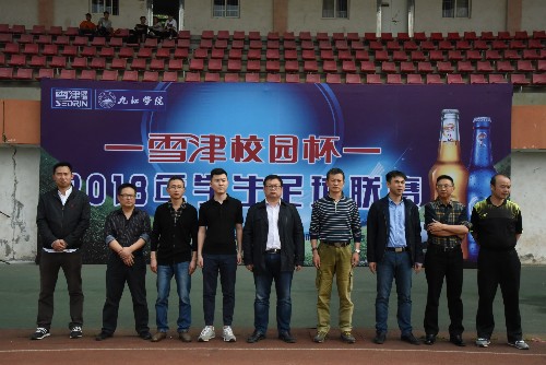 4月11日下午,由学生处、校团委和体育学院共同举办的九江学院2018年雪津校园杯足球联赛在南区足球场拉开帷幕。学生处、校团委、体育学院相关领导、老师,百威英博雪津啤酒有限公司代表以及校学生会、各院代表队的队员们参加了开幕式。