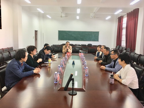 4月19日,应文传学院的邀请,湖口广播电视台台长陈美清一行来到文传学院与文传学院领导洽谈广播电视编导及播音主持与艺术专业建设事宜。与陈台长同行的还有湖口广播电视台副台长龚丹、董小海,办公室主任王晓红、新闻部主任梅霞。文传学院党委书记汤红莲,副院长朱全国,副书记吴疆,副院长陈建军,办公室主任田中兴,广编教研室主任李立广、播音教研室主任王苓等一同参加了会议。