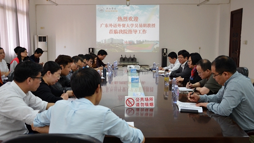为加强师资队伍建设,促进学生成人成才,近日,经管学院在义丰楼分别举办了两场专题座谈会,邀请到广东外语外贸大学吴易明教授与师生面对面互动交流,王万山副校长应邀出席并讲话,经管学院院长项益才、党委书记花金龙、副院长高阔,以及经管、电商学院部分青年教师参加了座谈,会议由经管学院院长项益才主持。