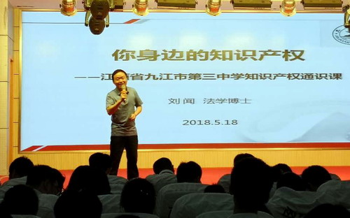 5月18日,应九江三中科研处的邀请,政法学院知识产权教研室副主任刘闻博士为九江三中高一年级学生和知识产权教育辅导员老师讲授了题为“你身边的知识产权”的通识课。