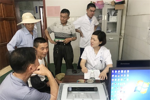 临床医学院/附属医院专家受到了卫生院张达来院长及当地居民的热烈欢迎,居民们早早就到卫生院等候。专家们一下车,顾不上喝一口水就就忙活开来,为大家量血压、测血糖、看诊等。流泗镇中心卫生院的医生们还特意邀请呼吸内科的李强老师和肝胆外科的魏远江老师走进病房,为其进行住院病人查房、指导。