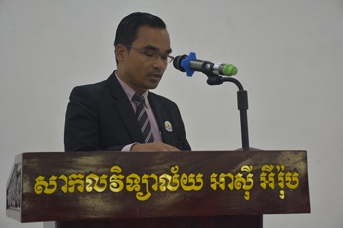 孙色塔副校长在开幕式上致辞,他感谢柬埔寨皇家科学院孔子学院在亚欧大学开设中文系,为柬埔寨培养了一大批汉语专业人才。中文系的汉语比赛活动丰富多样,特别是“汉语桥”,给了学生展现自己中文水平的机会,每一次比赛都能增长学生的知识和经验。他希望大家学好中文,为中柬之间的合作搭建桥梁。