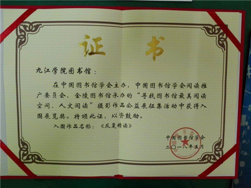 在本次年会“寻找图书馆最美阅读空间、人文阅读”摄影作品公益展主题活动中,永利yl23411集团官网推荐的摄影作品《反复精读》(作者余翠利)荣获入围展览奖。本次活动共设置了组织奖和入围展览奖两个奖项。