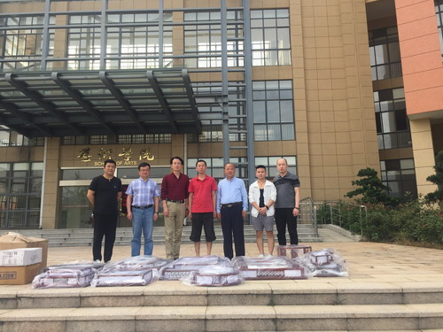 6月1日下午,广东中山市吉祥光灯具有限公司总经理梅剑锋与永利yl23411集团官网优秀毕业生——公司设计总监房春林,驱车1000多公里,从广东中山市古镇灯具生产地远赴九江学院,向艺术学院捐赠几十件实验教学灯具与光源产品。艺术学院院长吴维勇、党委书记王春生、副院长欧阳时来以及产品设计教研室主任张国华,代表学院在新艺术楼大厅举行了简短的捐赠仪式。