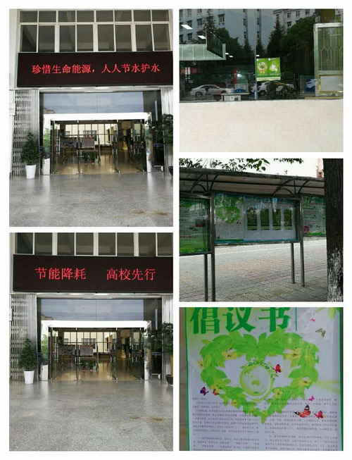 在校节能减排工作领导小组的组织下,各校区主干道、学生食堂、图书馆、行政楼等师生集中处都张贴了节能降耗倡议书、宣传画、悬挂了宣传条幅,并利用宣传橱窗、电子显示屏、校园网站等校内媒体做了大量宣传,取得了良好的成效。