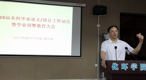 会上,教研科李仙芝老师就2018届毕业生毕业资格审查及学位授予情况进行了通报,并公布了2019届本科生学业警示情况。教研科曾湘晖老师汇报了化环学院2018届本科毕业论文(设计)的完成情况。曹小华副院长对2019届本科毕业论文(设计)工作进行了动员,强调了本科毕业论文工作的目的、重要性及相关要求,解读了2019届本科毕业论文(设计)的流程及进度安排。此外还简要通报了本科生2018年考研情况,介绍了毕业论文(设计)在研究生复试中的重要意义,鼓励同学们积极报考研究生,力争顺利实现研究生梦想。实验室胡小铭教授对本科毕业论文实验耗材申购及安全管理要求进行了说明。江西省生态化工工程中心胡华南博士介绍了工程中心良好的科研条件和环境。