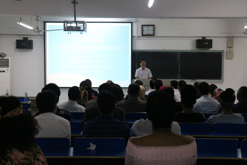 巴基斯坦籍教师Dr.Ashfaq 祝贺2013级学生完成医学理论阶段学习,感谢九江学院和国际交流学院老师对学生们的帮助,他表示,来中国学习医学是正确的选择,不会落后于世界上任何一个国家,希望大家终身学习。