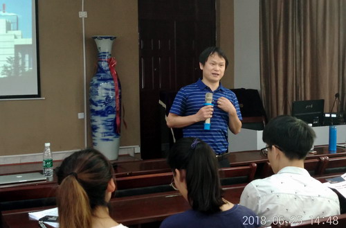 宣讲会上,朱院长通过视频短片、PPT宣讲等形式简要介绍了常州大学的地理位置、学位点、招生政策、研究生培养计划、学科研究平台等相关信息,详细解读了该院2019年研究生招生计划和报考注意事项,就常州大学研究生学习、生活、资助政策等情况和同学们进行了交流。随后,朱院长结合自己的学习经历与在座同学分享了自己的考研经验,并提醒同学们一定要结合自身情况明辨慎思,做出最适合、最有利于自己成长以及长远发展的选择。同学们认真聆听了此次宣讲会,在提问环节中就研究生招生政策、考试科目等问题提出自己的困惑,与朱院长、王教授进行了热烈的互动交流。