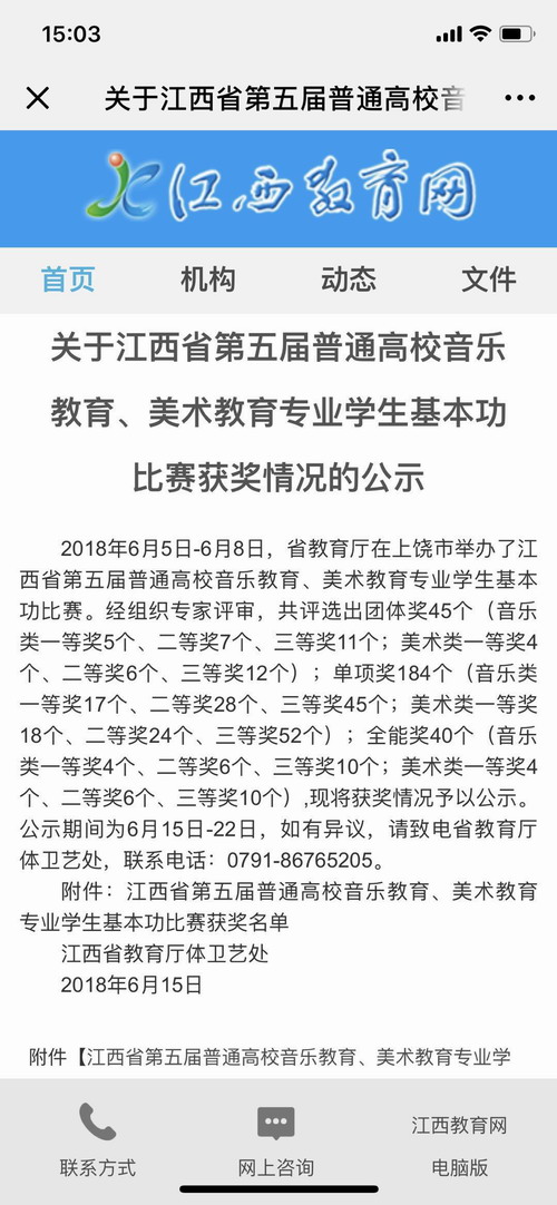 6月5-8日,由江西省教育厅主办,上饶师范学院承办的江西省第五届普通高校美术教育专业学生基本功比赛在上饶师范学院落下帷幕,来自全省本专科的22支代表队参赛,永利yl23411集团官网美术学专业A1581班王荟杰、姬锐、汪军伟3名同学代表学校参加比赛,并夺得团体二等奖。