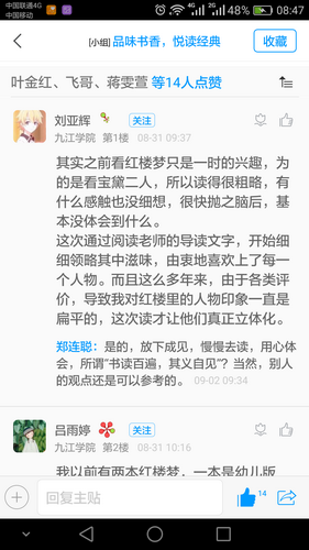 自7月9日活动正式展开以来,到8月31日活动结束。在近2个月的时间里,在殷庆林老师和郑连聪老师的带领下,大家共读了《读大学究竟读什么》、《红楼梦》2本书籍。导师们精心撰写导读帖、答疑解惑,读者参与热情很高,参与人数178人,累积发布508条话题,形成良好互动。