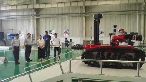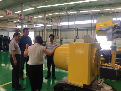 机材学院一行人员观看了铁路列检机器人、水下机器人、防爆轮式巡检机器人等特种机器人性能演示,纷纷称赞其科技含量。