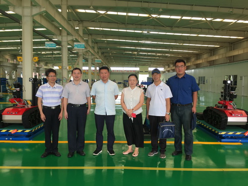 9月7日上午,机材学院院长张德勤、党委书记陈胜才、副院长李养良、省重点实验室高阳博士一行前往中信重工开诚(共青城)机器人产业基地考察。共青城市副市长张志坚,中信重工开诚(共青城)机器人产业基地负责人夏振伟热情接待了机材学院一行人员。