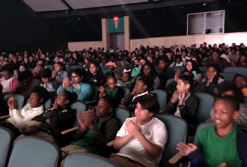 当天上午,来自萨凡纳市查特姆学区( Chatham )的八所中小学师生共计四百余人齐聚艾伦高中(Islands High School),共同见证了“孔院日”庆典的欢乐时刻。不少学生还带上自制的中国国旗,场面十分欢悦。萨凡纳州立大学孔子学院外方院长佩吉·布拉德博士向师生介绍了孔子和孔子学院,然后带领大家兴致勃勃地观看了中国民族舞蹈表演。整场演出以中国少数民族文化习俗介绍和特色舞蹈表演穿插的方式进行,形式新颖独特,孩子们争相上台跟着演员学习孔雀舞、红绸舞,模仿得惟妙惟肖。
