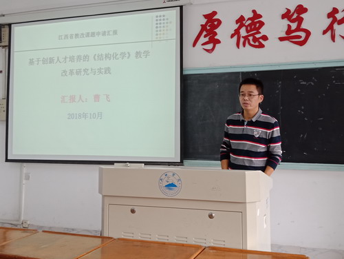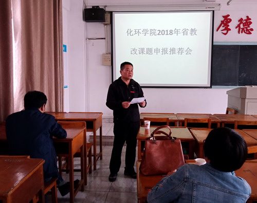 为了充分调动教师参与教学研究的积极性,提升本科教学水平,保障课题申报质量,10月24日下午,化学与环境工程学院在向学楼503召开了2018年省教改课题申报推荐会,虞耀君教授、陈晔教授、曹小华教授、刘祥丽副教授、张蔚萍副教授担任评审专家。会议由评审专家组组长虞耀君教授主持。