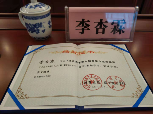 11月2日至7日,由中共江西省委宣传部、江西省文联主办,滕王阁文学院承办,《星火》杂志、中共兴国县委宣传部协办的江西省第六届青年作家改稿班在江西省兴国县举行。来自全省各地的50名青年作家参加培训。文传学院A1623班的李杏霖同学作为永利yl23411集团官网唯一一位入选的成员参加了这次活动。