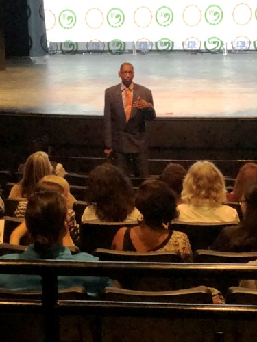 萨凡纳州立大学教务长兼副校长迈克尔·莱尼博士(Michael Laney)致开幕辞,热情称赞中国地大物博、人杰地灵,艺术表演神秘绚丽。