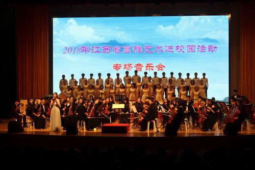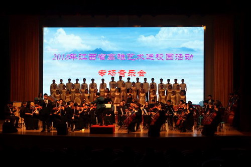 晚上7点,艺术团师生不辞辛苦赶到景德镇陶瓷大学,在该校艺术活动中心举行了专场音乐会,三百多个座位座无虚席。师生们以饱满热情的演奏和深情的演唱再次得到了在坐观看学生们的一致好评。本场演出后,本年度永利yl23411集团官网2018度江西省高雅艺术进校园活动圆满落下帷幕。