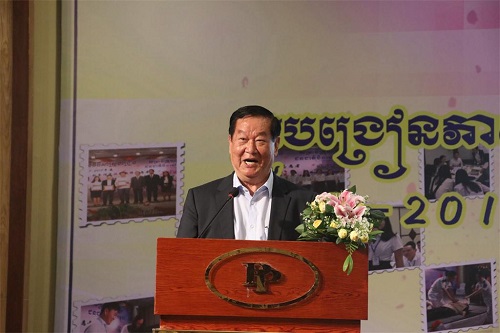 柬华理事总会常务副会长郑棉发勋爵代表柬华理事总会方侨生会长感谢孔子学院总部/中国国家汉办长期支持柬埔寨华文教育事业,感谢在柬的全体汉语教师志愿者为柬埔寨华文教育所做出的努力,感谢大家在艰苦条件下的辛勤付出。他说到,志愿者老师们的奉献,为中柬友谊和两国文化交流做出贡献,深受社会各界的赞扬和敬佩。