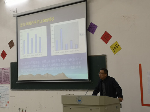 12月2日,基础医学院余文敏博士在华文楼第三阶梯教室举行以《手足口病柯萨奇A6病原临床与基础的结合》为主题的学术讲座,A1811班与A1812班共70余名同学参加学习。