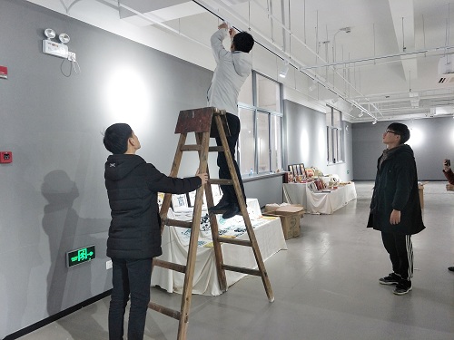 2018年12月5日,受中国文化部下属管理协会传统手工艺专业委员会*中国艺术高校产学研实践教学集聚区,智慧谷基地董事长蒋永强、总经理王国栋之邀,我院视觉传达吴晨晖主任及视觉传达系四位同学于12月6日带展品受苏州“大国工匠·智慧谷”艺术馆邀请进行布展,过程虽然繁杂,但看着整齐而又凸显独特风格的一排排作品,感到骄傲而欣慰。