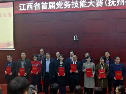 12月24日-25日,江西省委组织部举办了全省首届党务技能大赛,全省11个地市各设立1个赛区、承办1个项目,11个赛区比赛同步进行。1400多名选手全力以赴,角逐争魁,1100多个党建案例紧盯问题,破解难题。抚州赛区,全省学校、公立医院和科研所等事业单位的200多名党务工作者齐聚一堂,比拼党务技能。省委组织部副部长、省委非公有制经济组织与社会组织工委书记周训国、省委教育工委委员、省教育厅总督学曹伴好等出席并担任评委。外国语学院党委代表学校参加比赛,经过两天的激烈角逐,名列三十三名,荣获优秀奖。