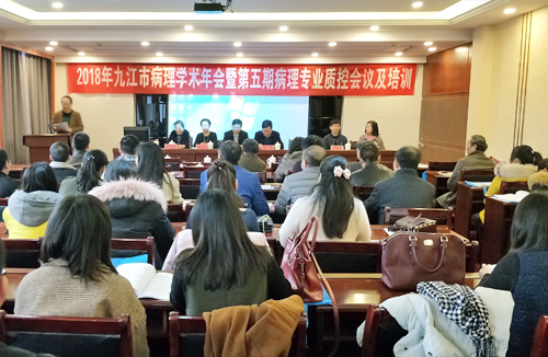 近日,九江市2018年病理学术年会暨第五期病理专业质控会议在九江学院濂溪宾馆顺利召开。第八届福建省医学会病理学分会主任委员、解放军第900医院病理科主任医师余英豪,江西省病理学会主任委员梅金红,市卫计委总经济师徐端,临床医学院/附属医院党委书记张南华,基础医学院院长车向新等出席大会,来自全市各医院的70余名病理专业人员参加了会议。
