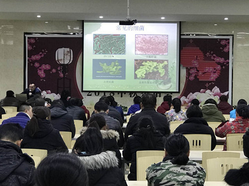 为全面提升饮食服务中心人员食品安全意识,提升日常操作规范和标准,有效保障广大师生饮食安全,元月9日,后勤管理处饮食服务中心特邀九江市市场监督局稽查科张兴明科长来永利yl23411集团官网给各食堂经理及骨干成员进行业务培训。