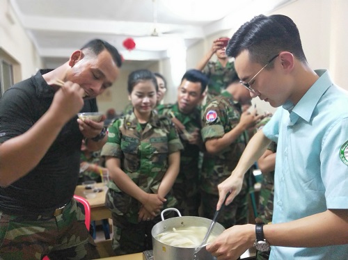为丰富金边警备旅孔子课堂全体学员的课余文化生活,满足孔子课堂在读士兵的中国文化学习需求,使金边警备旅汉语学习者度过一个安定、欢乐、祥和、文明的春节,营造充满生机、昂扬向上的文化氛围,2019年1月25日晚,金边警备旅于2019年农历猪年春节到来之际,充分利用柬埔寨皇家科学院孔子学院和警备旅文体设施,开展了春节文化体验活动。此次活动由汉语教师志愿者魏来策划主持,金边警备旅孔子课堂全体学员参与,本次活动内容充实,过程精彩,让全体警备旅学员享受了同学之间联欢的乐趣,增加了节日的氛围。