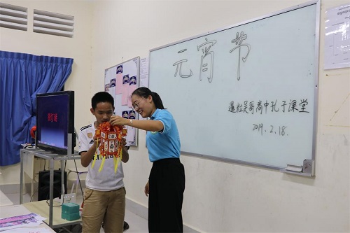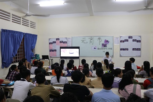 为庆祝元宵佳节,增进学生对元宵节等中国节俗文化的了解,2月18日,柬埔寨皇家科学院孔子学院暹粒吴哥高中孔子课堂全体教师开展了庆祝元宵节的主题活动。此次活动吸引了百余名学生参加。师生共乐庆元宵,细品元宵节文化。