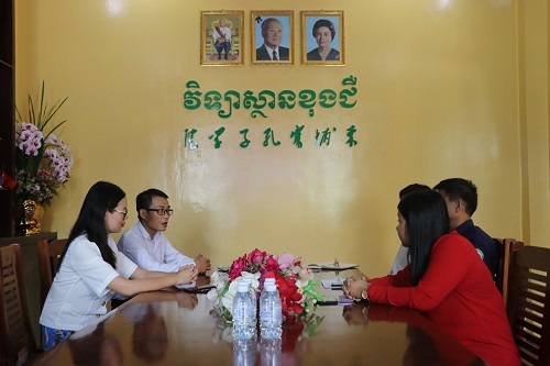 会上,双方就孔子学院与世界青年文化旅游职业学校的合作一事进行了热烈的讨论。双方均表示,愿意增加彼此间良好的师资力量、教学观摩学习的合作机会,希望更多的柬埔寨学生可以增加学习汉语的机会,理论与实际相结合,掌握专业的知识从而回馈社会。