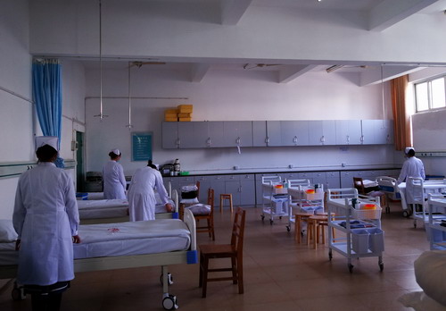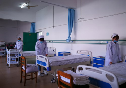 最后,同学们迅速换好工作服,整理好着装在基护楼实验室进行操作考察。考核项目为铺床。同学们6人为一组,在两个实验室依次进行操作。操作前同学们互相帮助、认真整理并检查用物,操作时熟练完成铺床项目,操作后有序离场。本次招聘会候场纪律有条不紊、秩序井然,这充分展示出我院学子的素质及修养。