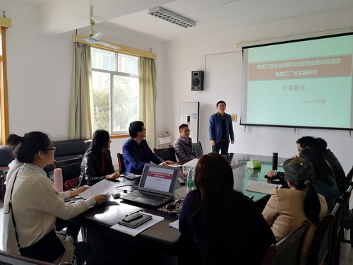 李同建博士就《生物工程专业创新创业教育在模块实训基地的工厂化实施研究》作中期检查陈述,从课题实施过程、本年度取得的主要成果、下一年度的工作安排、经费使用情况和尚待解决的问题等方面汇报了课题开展情况和取得的阶段性成果。专家组通过问询,指导课题组下一步研究要聚焦需要解决的问题,明确研究重点,力争取得更优秀的成果。