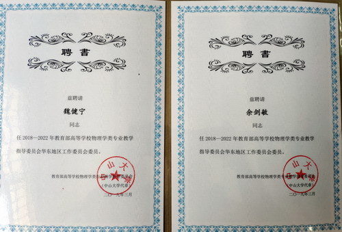 在这次会议中,永利yl23411集团官网理学院魏健宁、余剑敏两位老师被聘为2018—2022年教育部高等学校物理学类专业教学指导委员会华东地区工作委员会委员。