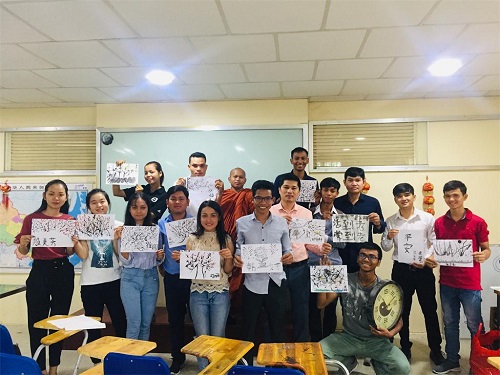 居住在热带国家,最爽的不是口渴了喝一杯冰镇饮料,而是躲在空调屋,却能吃上热腾腾的中国火锅,那酸爽,体验过的学生都知道!柬埔寨皇家科学院孔子学院中级C班热闹地举办了中国美食文化体验活动。期末考试前,志愿者教师魏梦莉老师给学生承诺:“好好复习,考得不错就给你们做中国火锅!”学生们听说老师要做火锅,瞬间沸腾了,纷纷投入到紧张的备考中。魏梦莉老师为这顿中式火锅准备了很久,亲自了解学生的口味以及他们爱吃的菜品,学生们第一次尝试中国老师自制的火锅,很是兴奋。火锅的香味伴着同学们的欢声笑语,一下子拉进了师生间的距离。