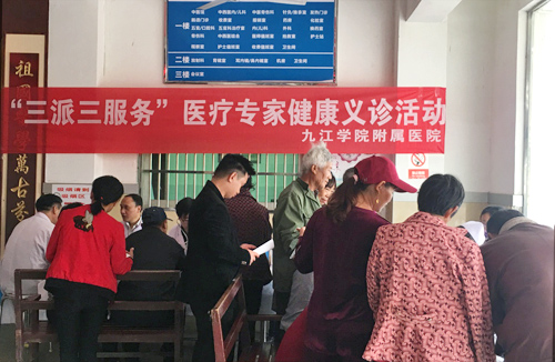 4月9日,由临床医学院/附属医院党委书记张南华、副院长贾宗林带队,该院“三派三服务”医疗专家与人事科、医务科、外联办工作人员一行,先后到都昌县蔡岭镇、三汊港镇、汪墩乡、土塘镇、徐埠镇、南峰乡等六地中心卫生院,开展第四批“三派三服务”工作督察,并在蔡岭镇中心卫生院开展健康义诊活动。