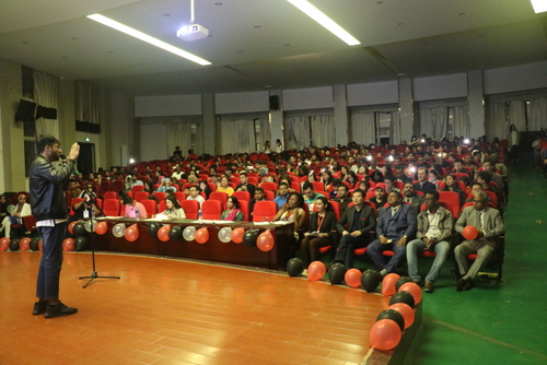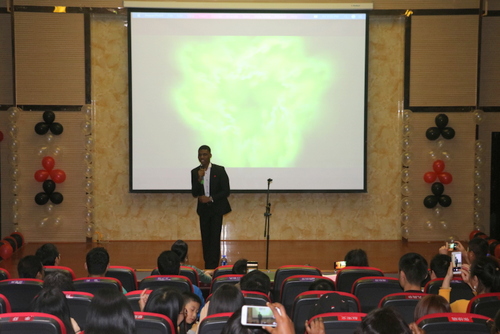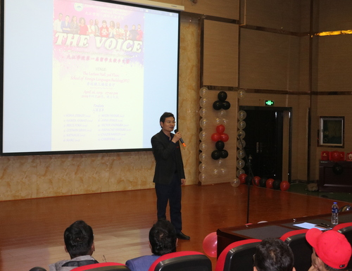 比赛开始前,国际交流学院副院长何广讲话,他说,国际交流学院举行留学生歌手大赛目的是给大家展示才华机会,希望通过此次活动,增进彼此的沟通和交流。